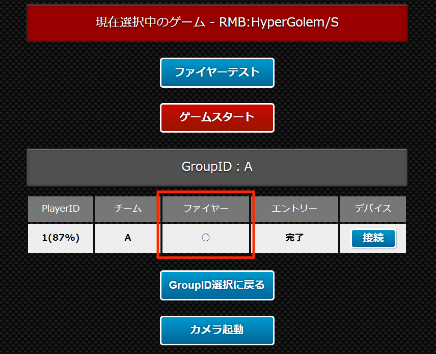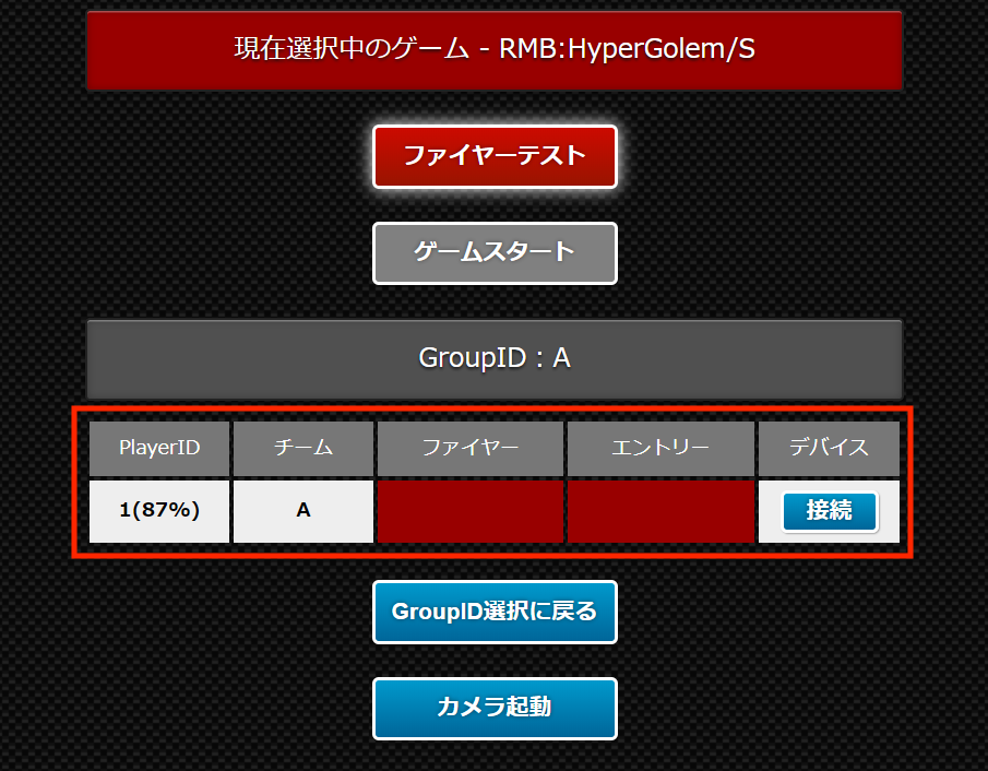 エントリー画面に参加プレイヤーが表示されることを確認します